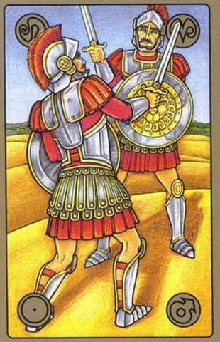 Если рассматривать значение и толкование этой карты, то перед нами символ противостояния двух сил: внутреннего напряжения и внешних вызовов. В системе символов Таро Орбана и во втором Симболоне акцент делается на необходимости проявить волю, но при этом осознать, что излишняя агрессия способна разрушить. Описание карты подсказывает: раз фигуры на ней часто изображаются в движении, отражая динамику, стремление к победе и защиту собственных ценностей, то и трактовать изображение следует исходя из этого. Именно поэтому её характеристика связана с активностью, решимостью и готовностью действовать.