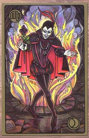 Астрологическое соответствие карты Искуситель – планета Плутон в знаке зодиака Скорпион. Плутон в Скорпионе символизирует удовольствие, чувственность, наслаждение, страсть к телесному и материальному. Она ценит красоту, комфорт и физическое наслаждение, что в контексте Искусителя проявляется в крайних, избыточных формах.